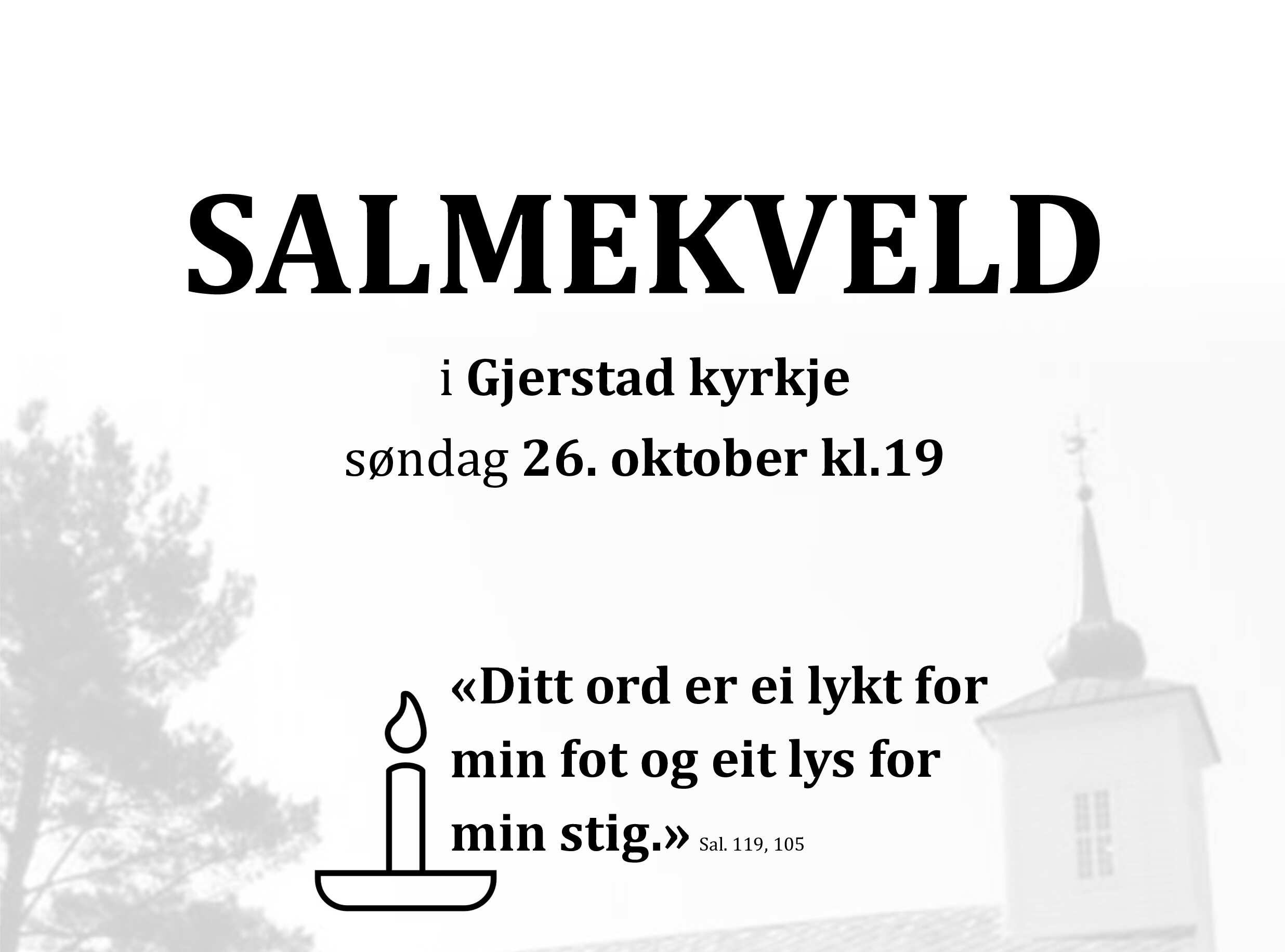 Velkomen til salmekveld i Gjerstad kyrkje. Solist Rikard Seltveit, Organist Haldor Askeland Mjelstad og Sokneprest Astrid Marie Haugland skal leie denne kvelden. Kollekt til kyrkjemusikk arbeid i Osterøy sokn, VIPPS nr. 547323. Vel møtt!
